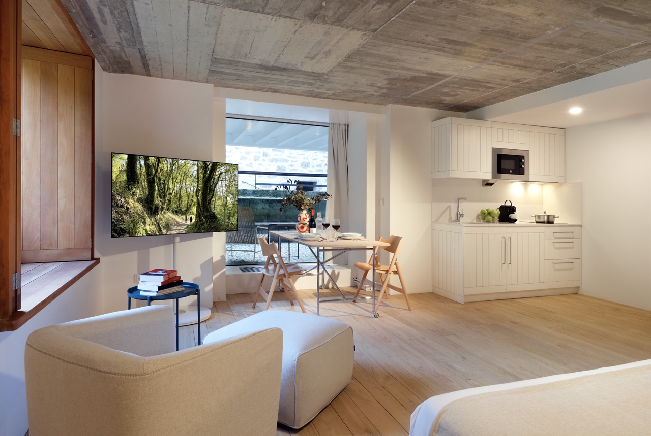 Sumérgete en el confort y la serenidad. El apartamento ofrece un espacio cuidadosamente decorado que refleja la esencia de Casas do Sarela: conexión con la naturaleza, respeto por la arquitectura histórica y un toque contemporáneo. Equipados con todo lo necesario para una estancia inolvidable, el apartamento cuenta con cocina totalmente equipada, un acogedor salón y vistas a la exuberante vegetación que rodea la propiedad.