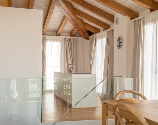 Eleva tu experiencia en este magnífico apartamento de nada menos que 125 m2, distribuidos en dos luminosos pisos, tres dormitorios, dos baños, una maravillosa terraza exterior y salón equipado con una mesa para ocho personas para que puedas compartir tu experiencia en familia o con tus amigos.